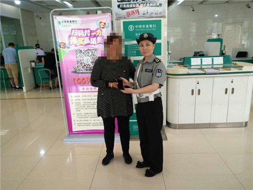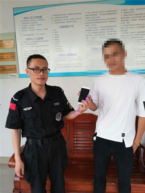 2018年6月25日下午3時許,中行西皋支行保安冒萍在服務區拾到手和一部,下班前找到失主。